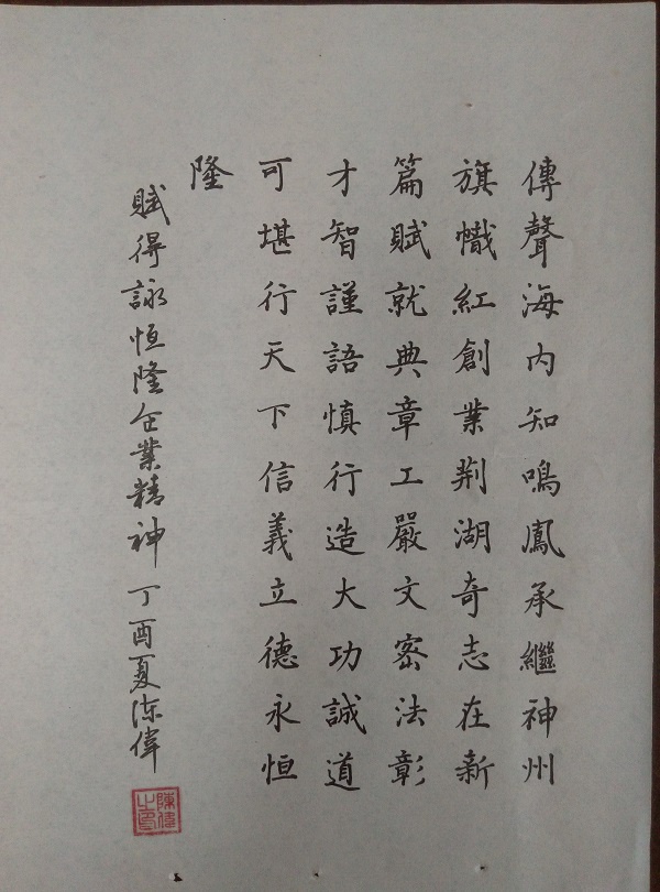 136 毛筆行書自作詩(shī)《恒隆贊》